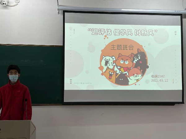 为使我班学生切实了解到本科教学审核评估的重要性,倡导本班本班同学全力配合迎接评估,2022年3月22日21级电信2102班于教学楼A307举办了“迎评估,促学风,树新风”的主题班会。
