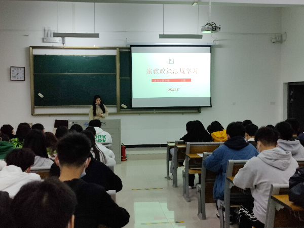 为深入学习贯彻习近平总书记关于宗教工作的重要论述,全面落实党的宗教工作方针政策,进一步强化党员理想信念教育,端正意识形态认识,永葆共产党人的本色。根据有关文件精神要求,2022年3月27日晚,嘉鱼校区工作部第三学生党支部认真组织开展了“宗教政策法规专题学习”主题党日活动。