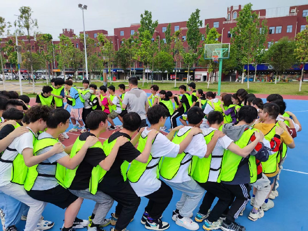 13时30分,活动正式开始,主教官丁飞老师带着同学们玩了三项破冰游戏(时空穿梭+爱的拥抱+信任后坐)使大部分学员逐步敞开心扉、融入集体,慢慢相信团队的力量,破冰游戏结束后,同学们之间逐渐熟络,主教官让大家分成4支队伍,每队15人,领取旗帜、油性笔,每支队伍围成一个圈依次进行自我介绍后选举出一名队长以及队秘并确定队名、logo、口号。随后开始以团队为单位进行比赛,几项活动过后各队长做了团队总结。团队精神能够使团队成员齐心协力,拧成一股绳,朝着一个目标努力,对团队的个人来说,团队要到达的目标即是自我必须努力的方向,从而使团队的整体目标分解成各个小目标,在每个队员身上都得到落实。