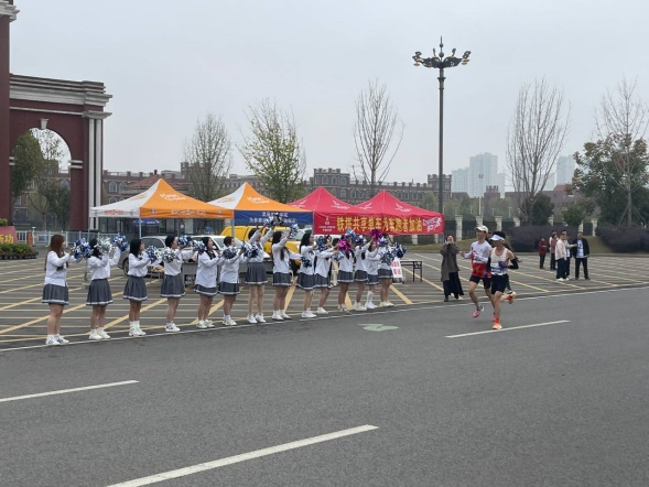 嘉鱼校区工作部啦啦队为2023守望长江超级马拉松加油助阵