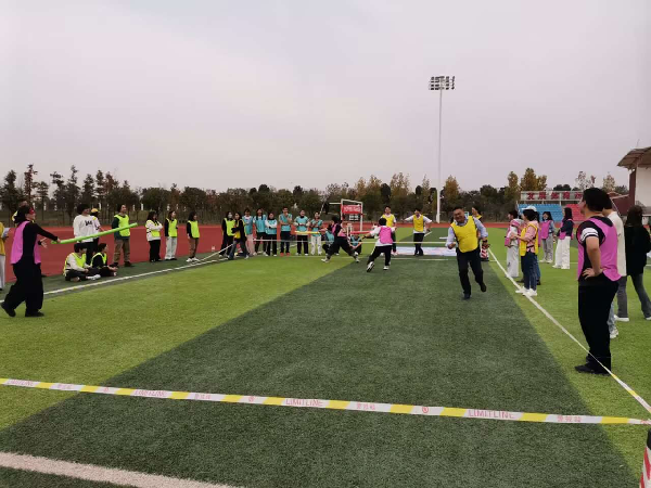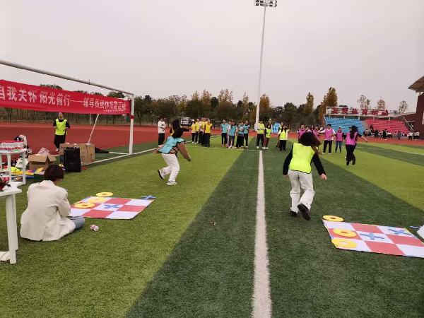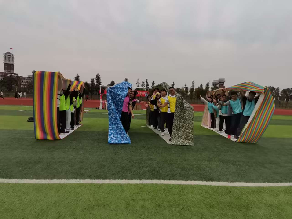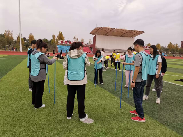 活动开始,全体辅导员手搭手围成一圈进行热身和拉伸运动“花开花落”,根据抽签分为红黄蓝绿四个队伍进入素质拓展环节。四支队伍团队协作,挑战不倒森林、极速三子棋、蒙眼打人、抢球大作战、无敌风火轮五个项目,充分展现了团队凝聚力和战斗力,辅导员们巧用智慧、拼搏竞争,展现团队精神的同时,愉悦了身心,传递了快乐。