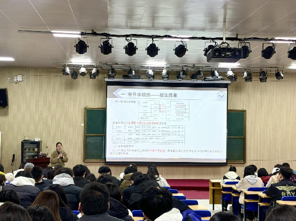 随后,张瑞林教授就学历提升、专升本政策解读、就业指导等内容展开深入讲解。他结合市场营销专业特点,分析了当前市场对营销人才的需求变化,指出数字化营销、新媒体运营等新兴领域为专科毕业生提供了广阔的发展空间。张教授详细解读了专升本相关政策,鼓励同学们根据自身情况选择适合的发展路径。
