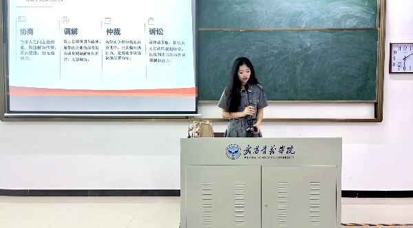 其中,法学2404班陈一鸣和法学2401班李泓静分别前往教学楼A104、A103,围绕大学生常见的兼职骗局与消费纠纷主题,通过丰富案例与相关法律条款,剖析生活中的点滴法律场景,激励全体同学在面对法律侵权问题时做出恰当应对。