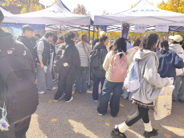2025年11月27日上午,威廉希尔WilliamHill官方网站威廉希尔WilliamHill官方网站教学楼对面停车场热闹非凡。由社团联合会主办的本学期第二次社团集中招新活动在此拉开帷幕。尽管参与此次招新的主要为近期新成立的社团,但仍吸引了大量学生驻足咨询、踊跃报名,展现出校园社团文化持续生长的蓬勃活力。